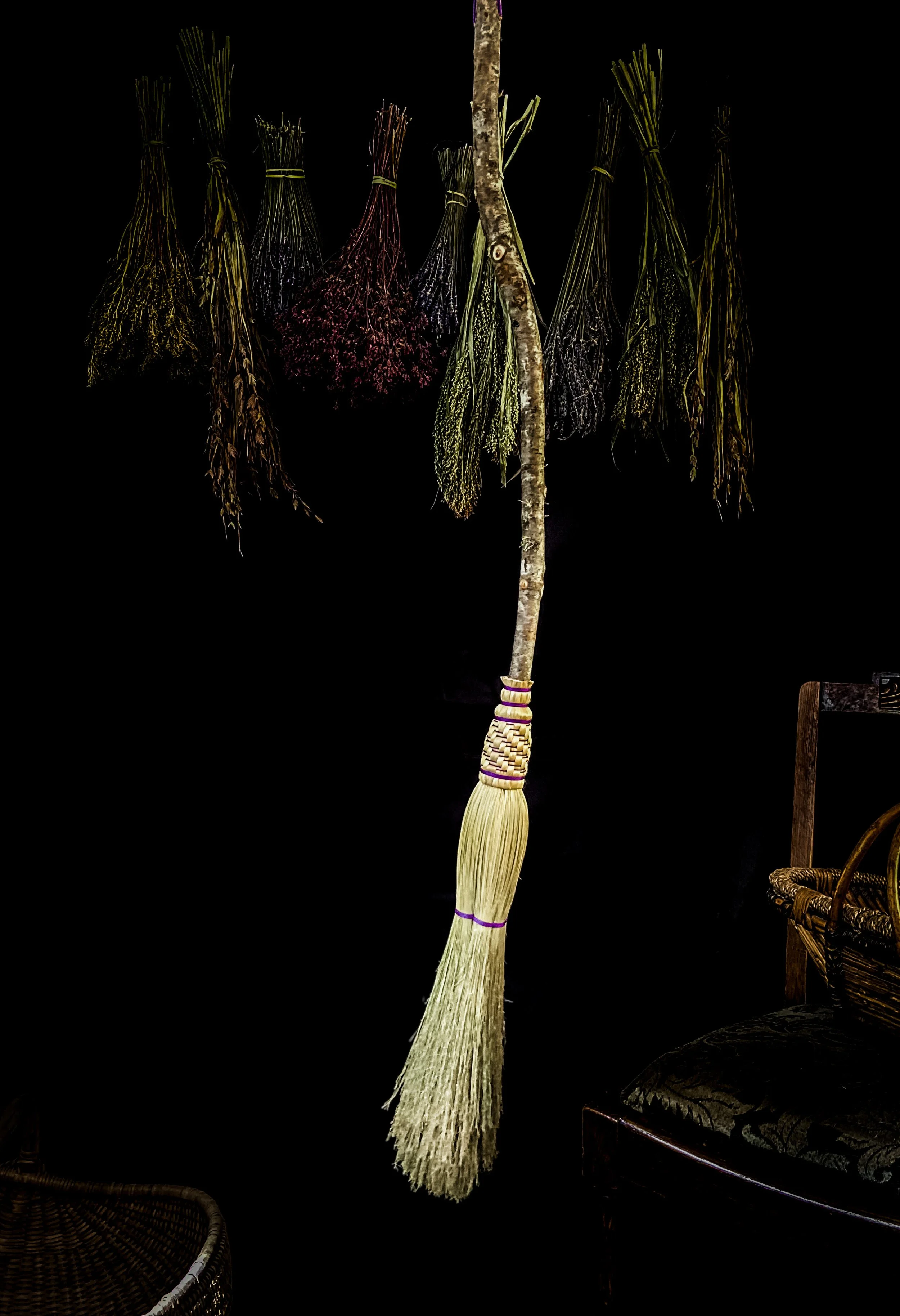 The Weaving Extravaganza Bundle is designed for makers who want to deepen their weaving practice across multiple broom forms. This bundle includes both the Weaving Intensive Workshop and the Woven Witch’s Besom Workshop, along with kits for each class.