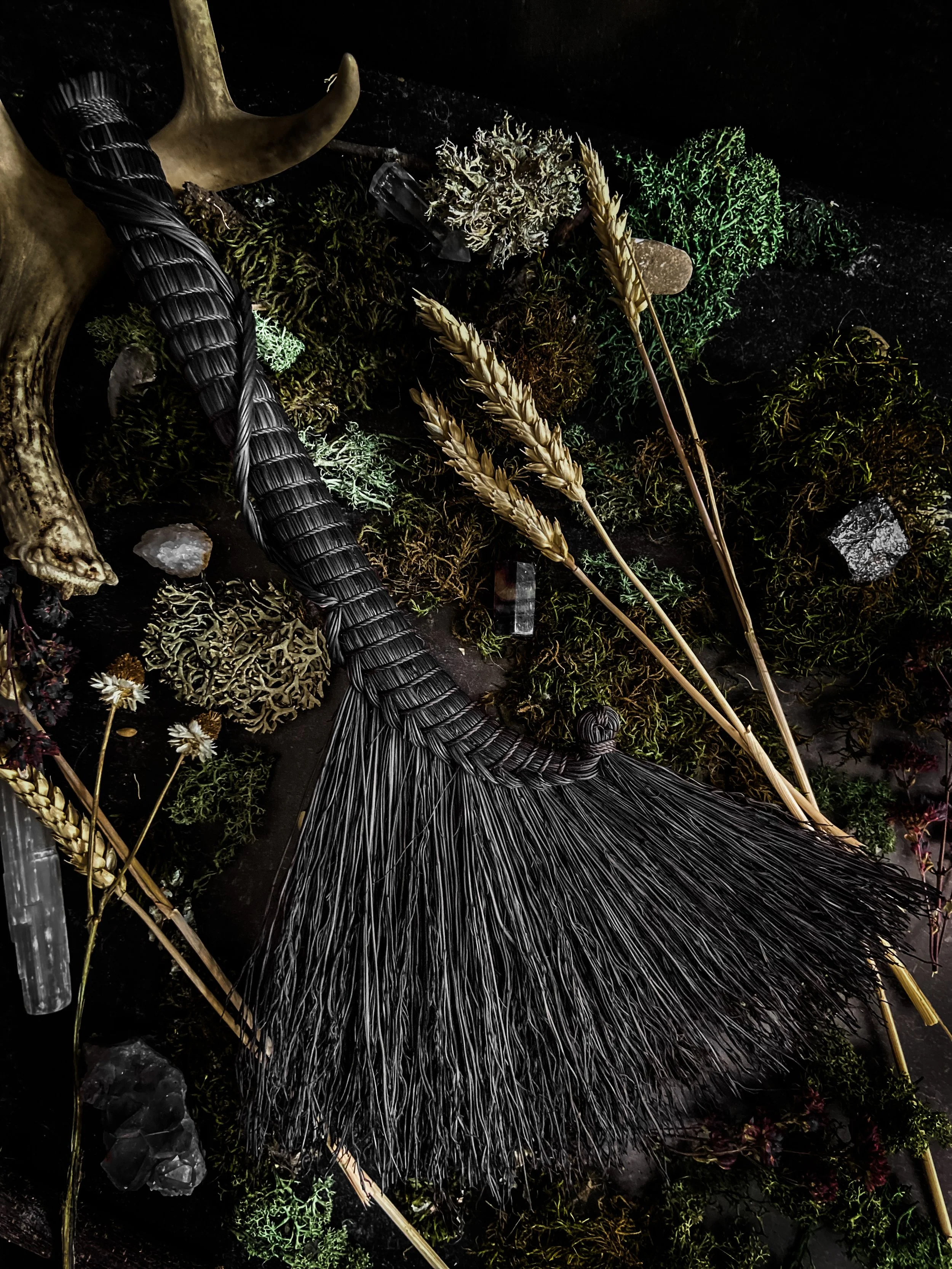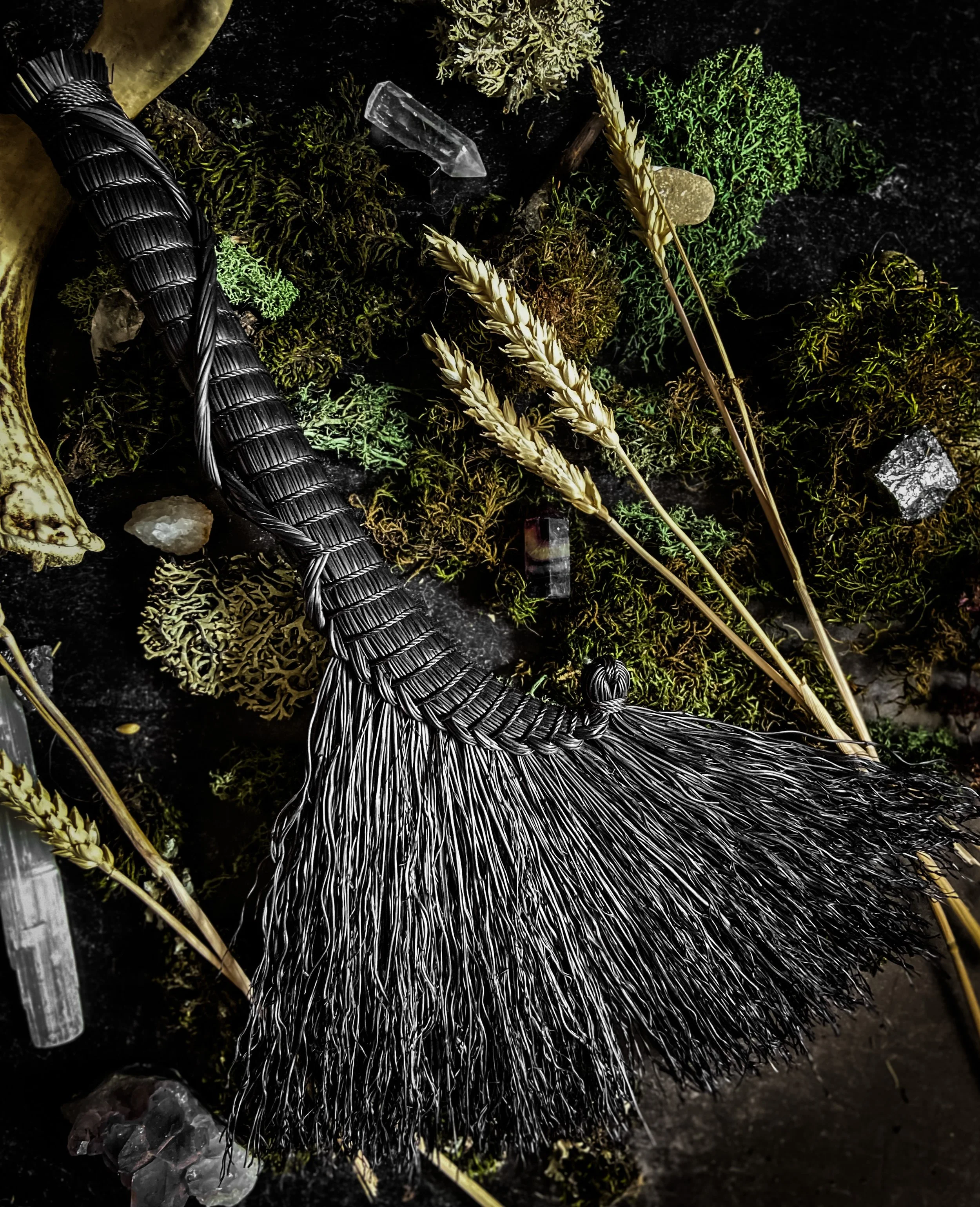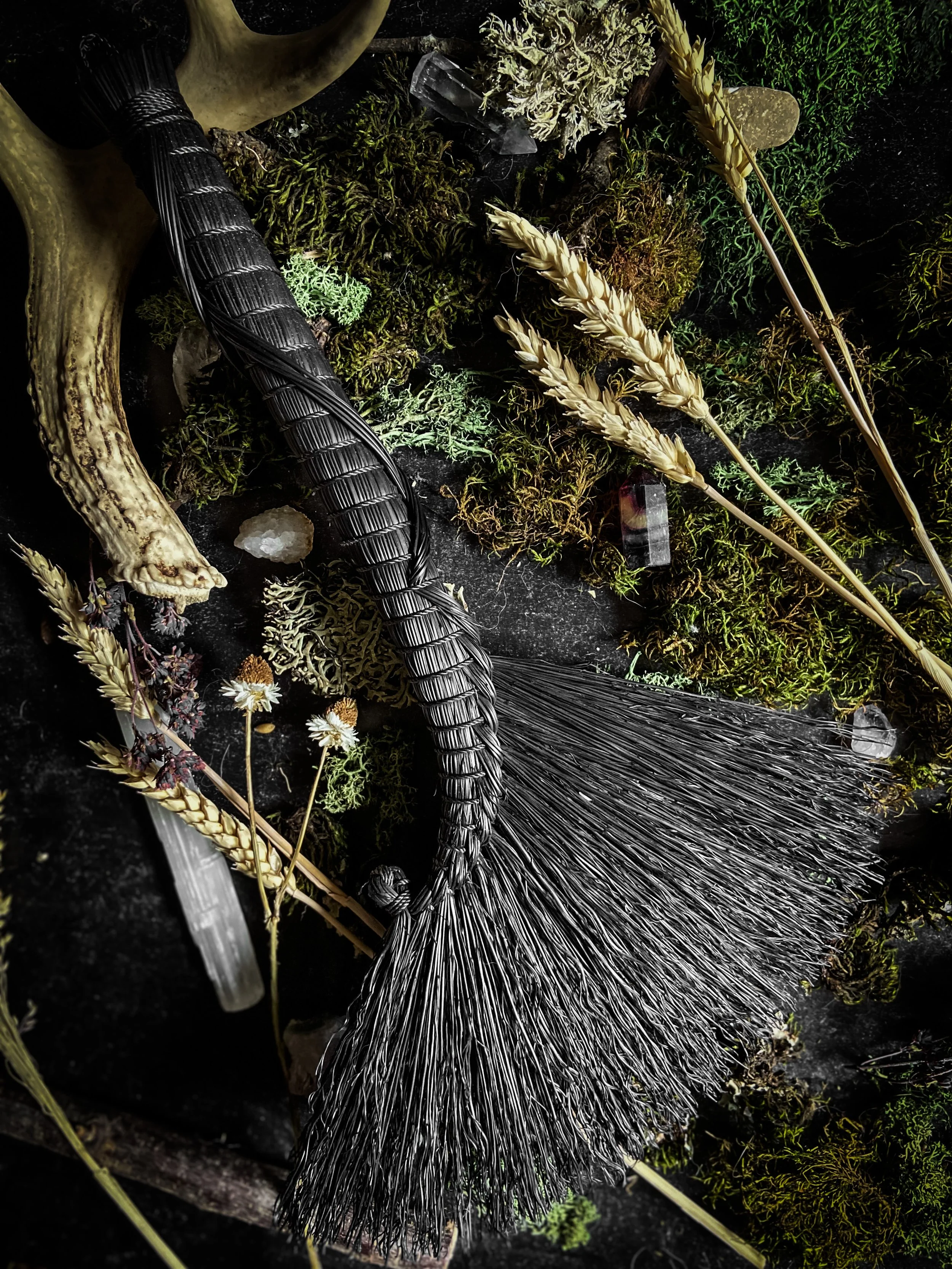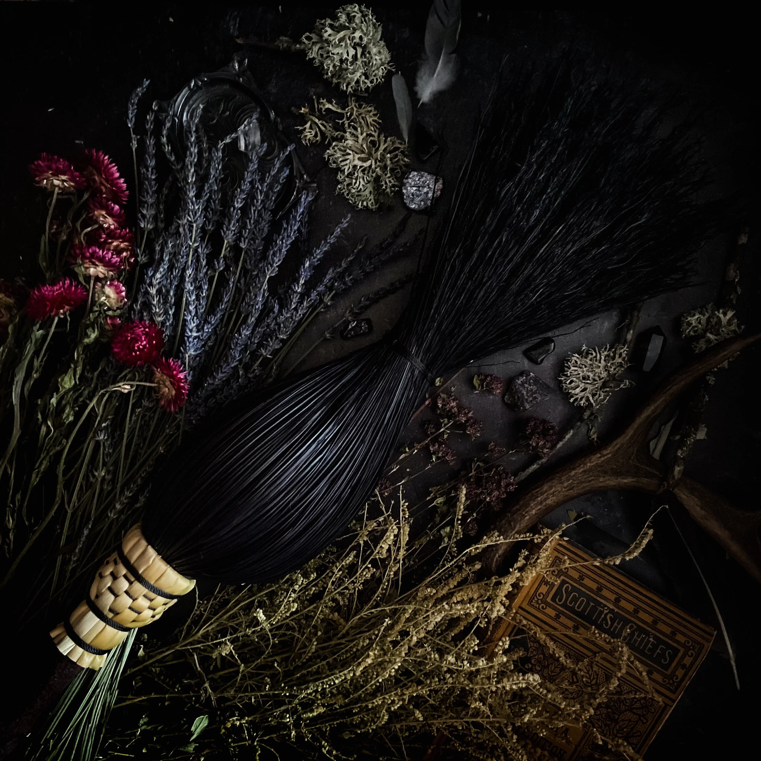 Samhain Black Broom Bundle: Stitched Whisk, Rooster Tail Whisk & Besom Classes
